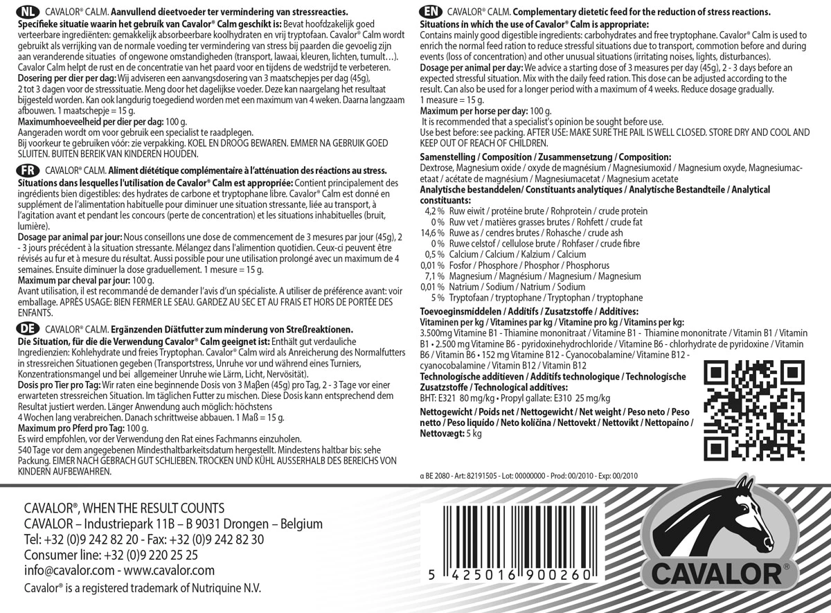 Cavalor® Calm is an herbal calming supplement designed to help spooky, anxious, or unfocused horses feel relaxed and focused. Along with soothing herbs, it also provides vitamin B1 and tryptophan to promote a healthy nervous system and support normal serotonin levels. Additionally, it includes magnesium, which can help horses that carry stress in their muscles. This well-rounded formula is the perfect choice for horse owners looking for a daily calming supplement for their young or nervous horses.