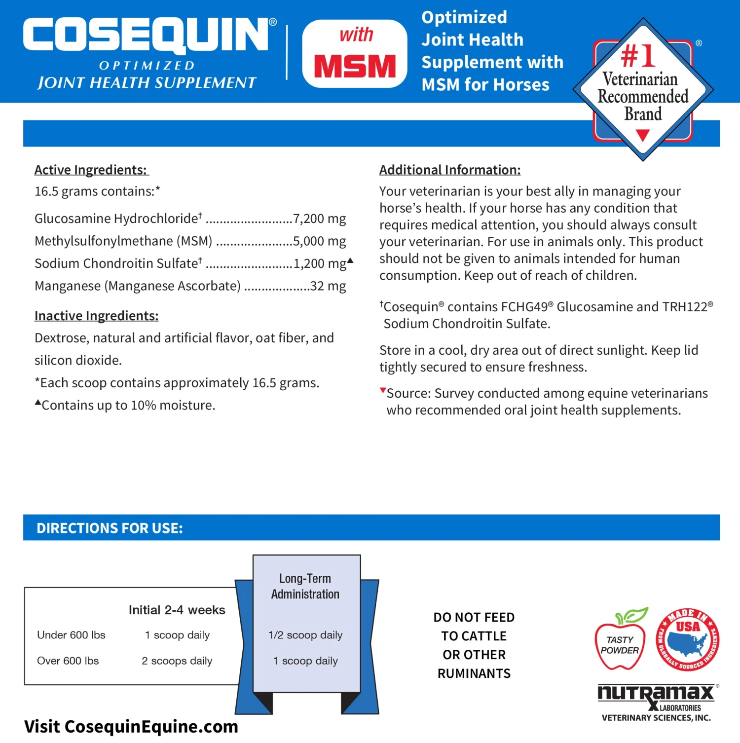 - Easy to Serve: Cosequin Optimized Equine Joint Health Supplements come in an easy to administer tasty powder.