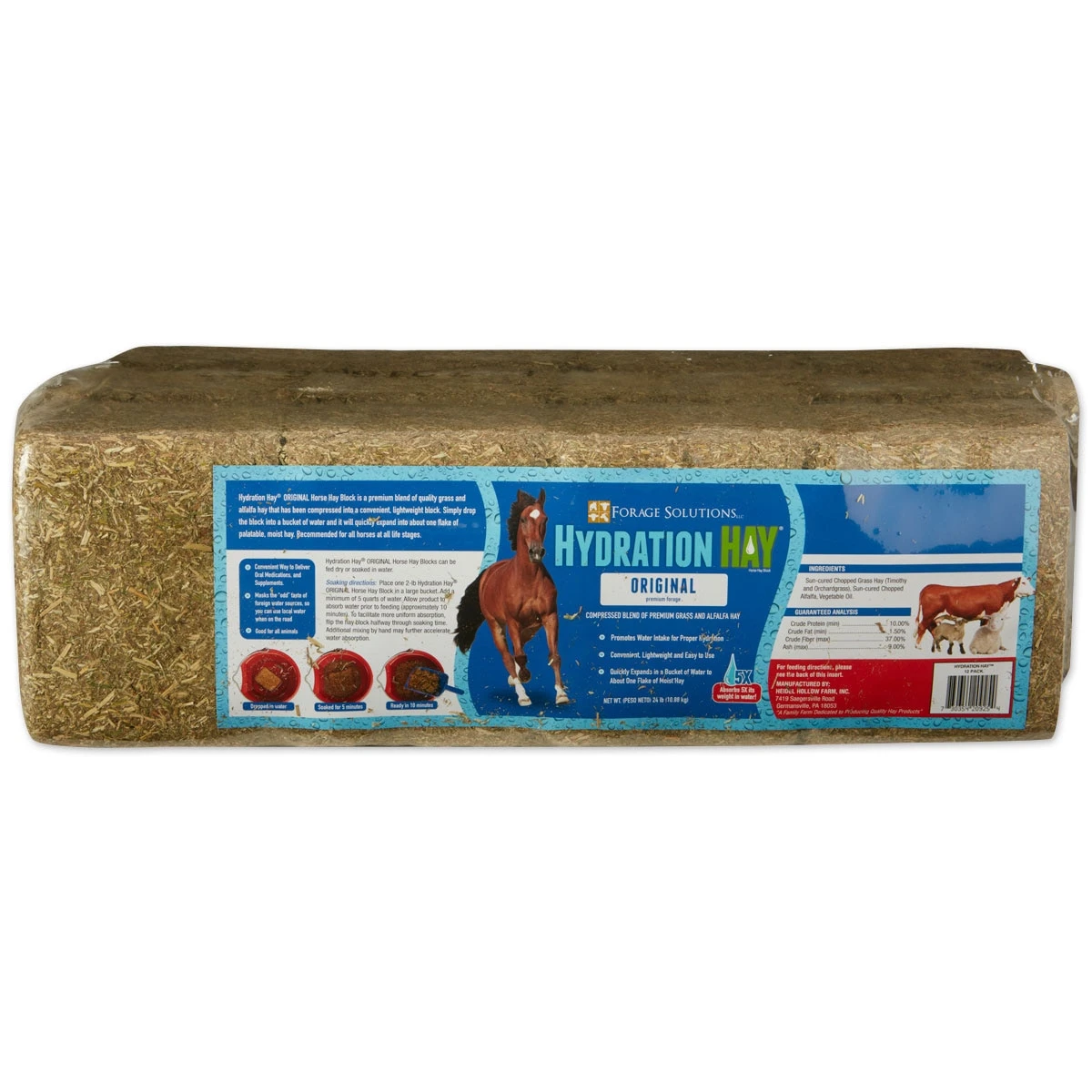 Place one 2-lb Hydration Hay Horse Hay Block in a large bucket. Add a minimum of 5.5 quarts of water. Allow product to absorb water prior to feeding (approximately 10 minutes). Recommended for all horses at all life stages.