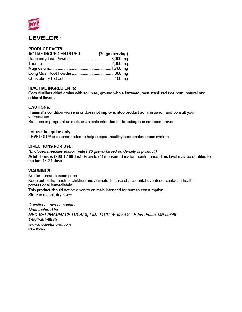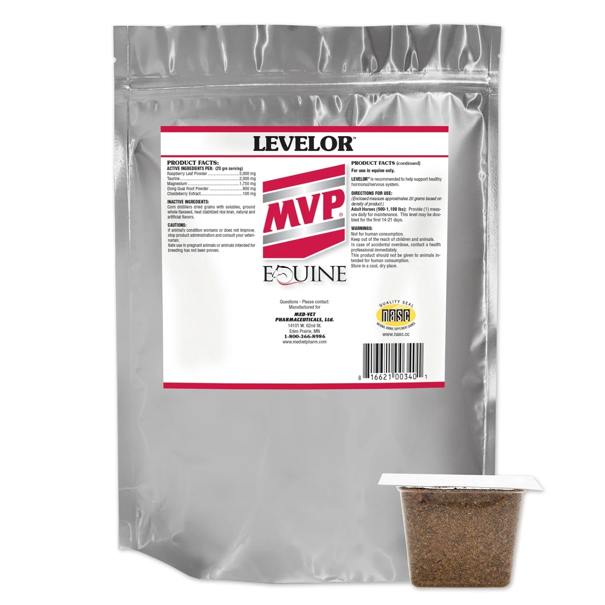 Levelor™ is designed to help support normal hormone levels and healthy nervous system function. Perfect for helping maintain a quiet disposition in mares and geldings, this formula includes a combination of raspberry leaf, taurine, magnesium, dong quai root powder, and chaste berry for comprehensive support.