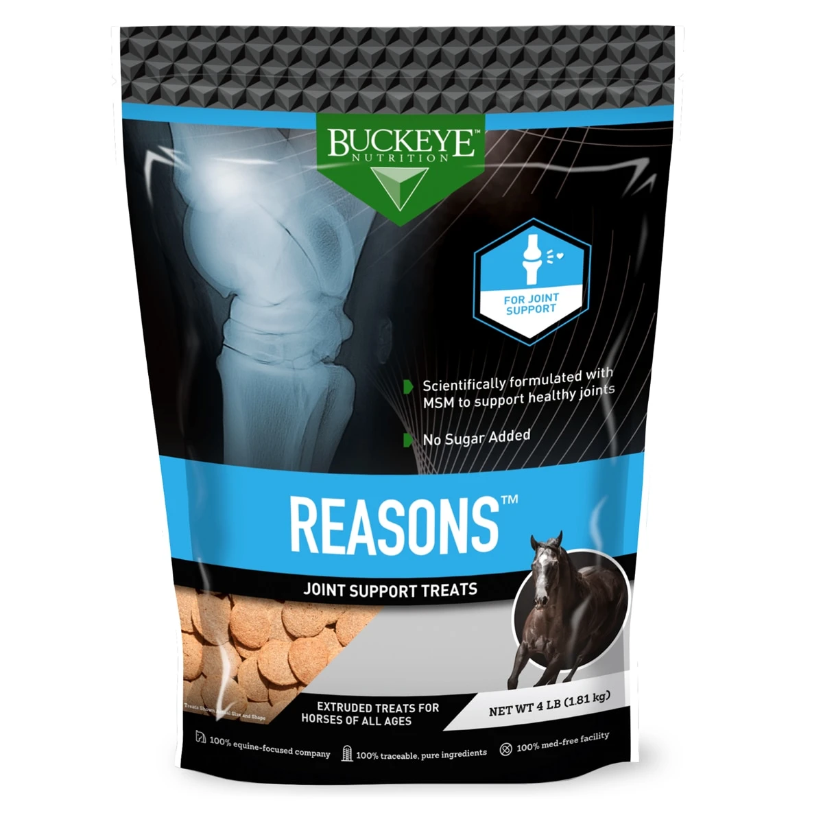 REASONS® Joint Support Treats are scientifically formulated with MSM to support healthy joints. These highly digestible treats are the perfect way to give your horse a tasty, healthy reward and provide fundamental ingredients for maintaining healthy joints and supporting a healthy inflammatory response.