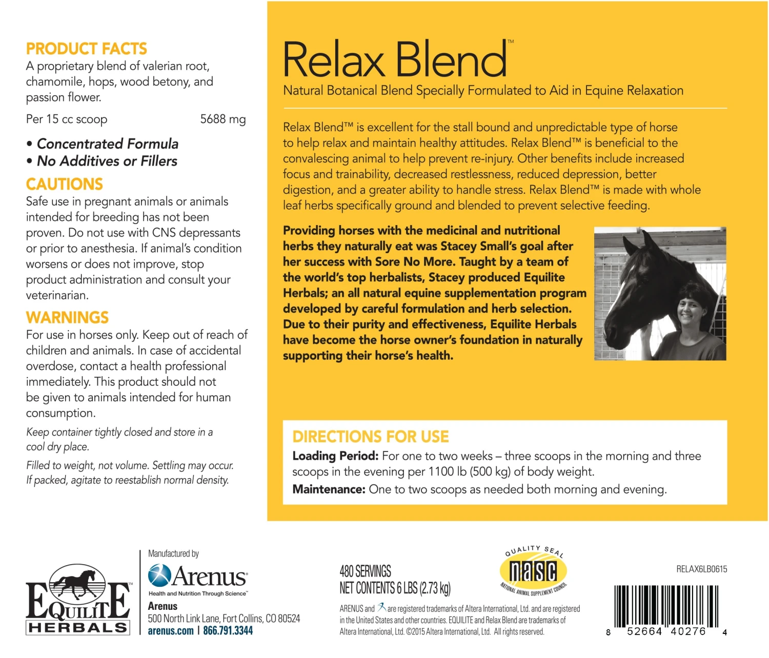 Relax Blend™ is made with whole leaf herbs specifically ground and blended to avoid selective feeding in even the pickiest eaters, ensuring your horse always receives a full serving of the supplement.