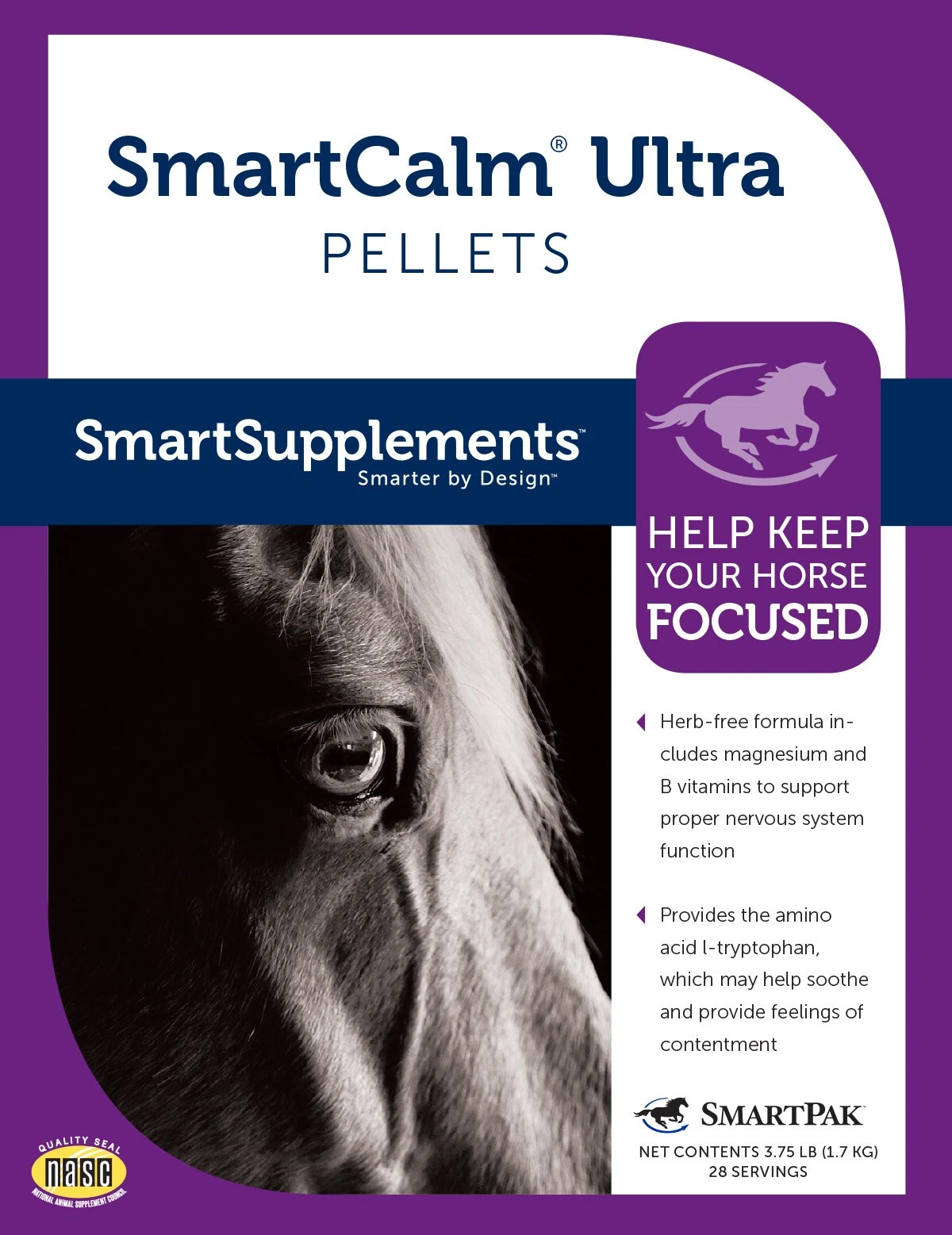 “Knowing how common gastric upset is and that there can often be a correlation between gastric issues and behavioral challenges, we designed the Stress Ease SmartPak to combine comprehensive calming and stomach support to tackle these kinds of problems from multiple fronts. These two areas of support work synergistically, helping you and your horse have the best ride possible.” – The SmartPak Horse Health Experts